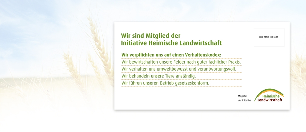 Zeigen Sie mit diesem Banner, wofür Sie als Mitglied der Initative Heimische Landwirtschaft stehen. Für den Außenbereich geeignet.